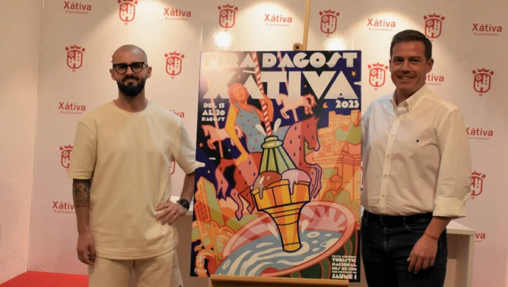 En el Ayuntamiento de Xàtiva se ha presentado el cartel oficial de la Fira d’Agost 2023, diseñado por Cesc Roca, un reconocido diseñador e ilustrador de la ciudad.